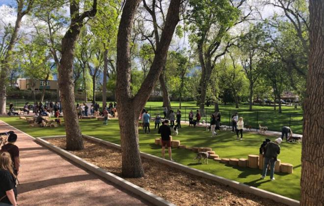 Construction on the new ADA accessible dog park located in Antlers Park in downtown Colorado Springs is now complete and ready to provide a safe and enjoyable space for your furry friends to play, exercise and socialize.