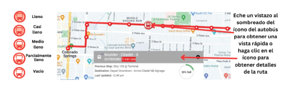 - Implementar un programa en línea para que los pasajeros verifiquen los niveles de capacidad de los autobuses en tiempo real en My Next Bus. (Mostrado a continuación.)