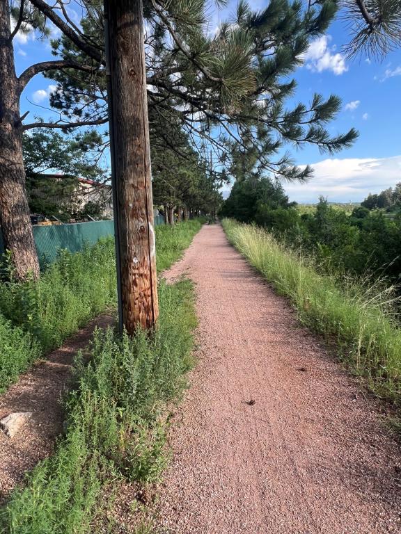 Pikes Peak Greenway after the work done on it, with a freshly paved sidewalk.